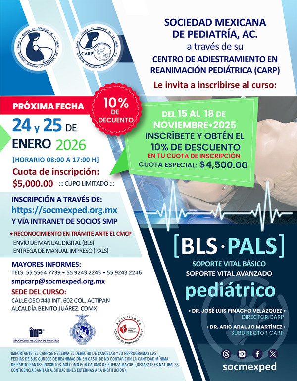 Debido al interés de la Sociedad Mexicana de Pediatría de impartir capacitación en materia de reanimación, inicia en 1996 su incursión en los cursos de reanimación, pero es hasta el 2001 que se funda el Centro de Adiestramiento en Reanimación Pediátrica conocido como CARP, lidereado por su fundador Dr. Remigio A. Véliz Pintos.