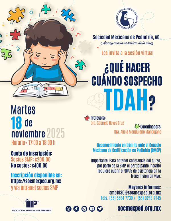 *Favor de enviar credencial / carta de residente vigente para acreditar su inscripción. Correo electrónico: smp1930@socmexped.org.mx