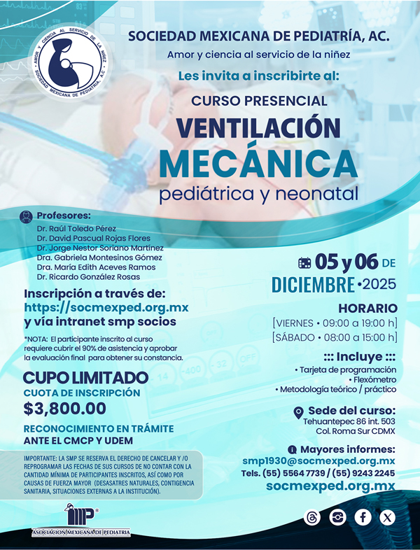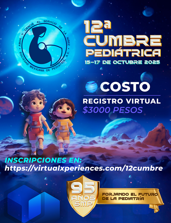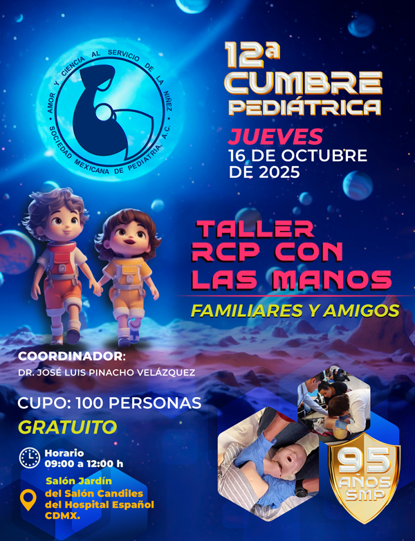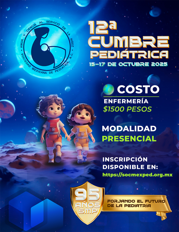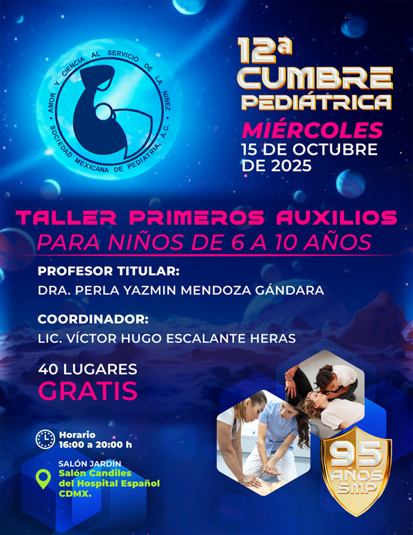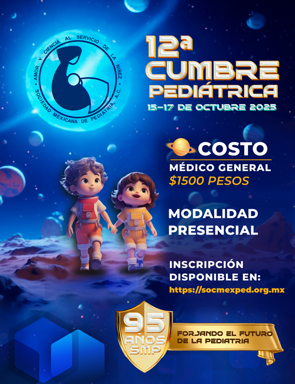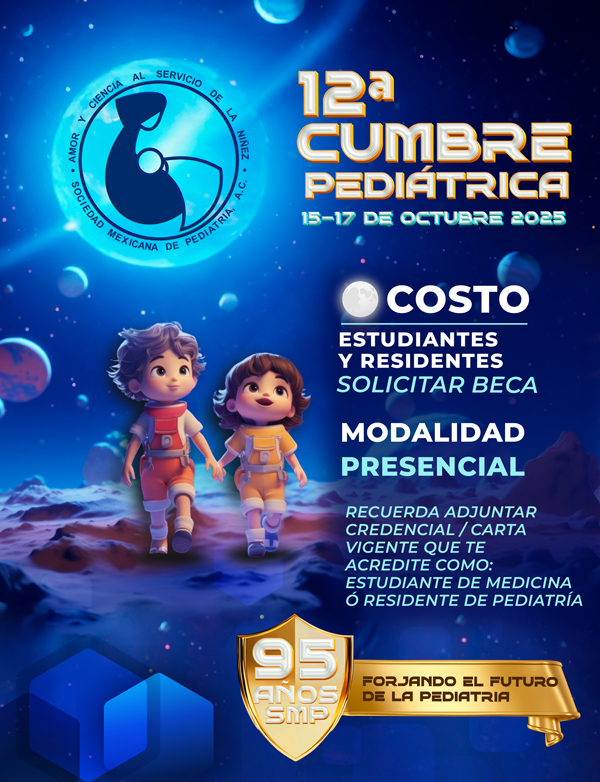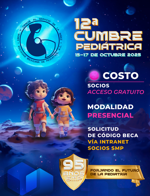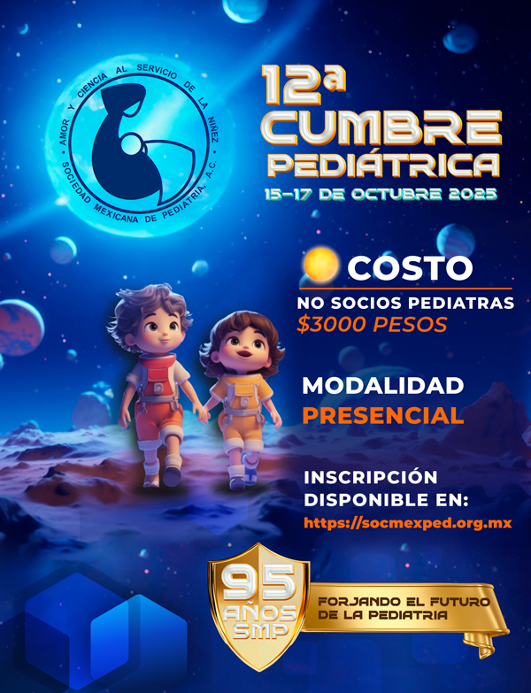 El personal administrativo y la Mesa Directiva 2025-2026 nos esforzaremos por brindarles una atención de calidad y un espacio de constante crecimiento profesional. Aprovechamos esta oportunidad para invitarlos a participar en la 12ª Cumbre Pediátrica de la Sociedad Mexicana de Pediatría, que se llevará a cabo los días 15, 16 y 17 de octubre de 2025. Este evento será una gran oportunidad para aprender, compartir experiencias y fortalecer nuestra comunidad. Gracias por su confianza y compromiso con nuestra sociedad. Los invito a explorar esta plataforma y a seguir participando activamente en nuestras iniciativas. Juntos, continuaremos avanzando en la noble misión de velar por la salud y bienestar de nuestros niños.