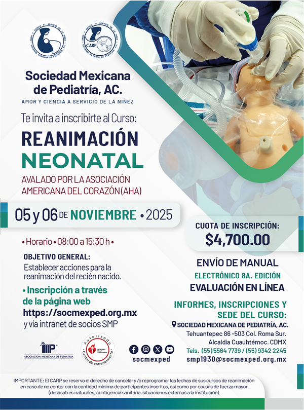 Asimismo, continuamos fortaleciendo la Revista Mexicana de Pediatría, un pilar fundamental para la difusión del conocimiento científico. Además, mantenemos y expandimos nuestras relaciones con ponentes internacionales para enriquecer el intercambio académico en beneficio de nuestros socios y, sobre todo, de los niños que atendemos. Me complace informarles que contamos con nuevas instalaciones para nuestro Centro de Adiestramiento en Reanimación Pediátrica. Este avance refleja nuestro compromiso por continuar el extraordinario trabajo realizado por nuestros expresidentes, directores e instructores, implementando los cambios necesarios para mantener este espacio actualizado y a la vanguardia de las necesidades actuales.