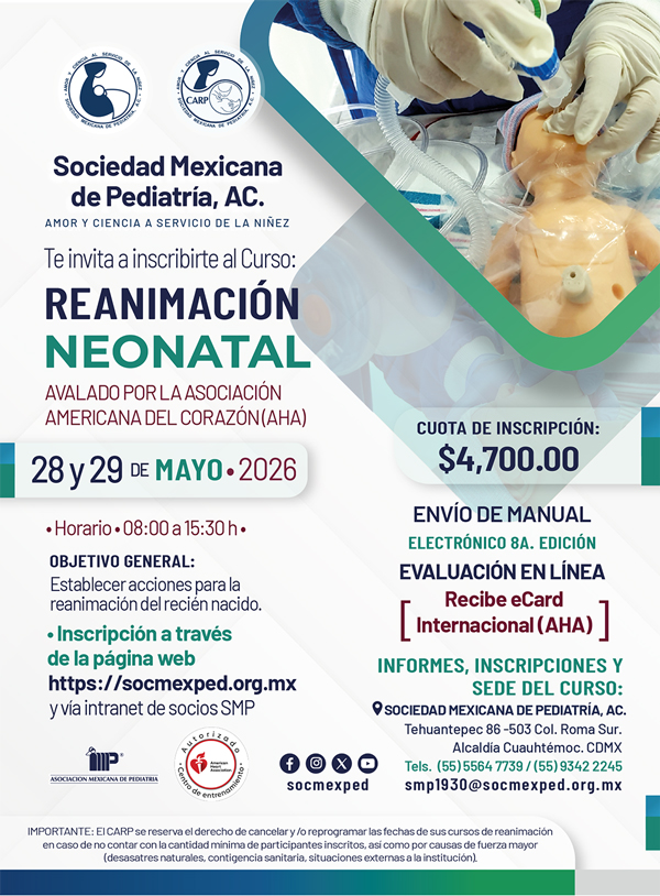 El personal administrativo y la Mesa Directiva 2025-2026 nos esforzaremos por brindarles una atención de calidad y un espacio de constante crecimiento profesional. Aprovechamos esta oportunidad para invitarlos a participar en la 13ª Cumbre Pediátrica de la Sociedad Mexicana de Pediatría, que se llevará a cabo los días 23, 24 y 25 de septiembre del 2026. Este evento será una gran oportunidad para aprender, compartir experiencias y fortalecer nuestra comunidad. Gracias por su confianza y compromiso con nuestra sociedad. Los invito a explorar esta plataforma y a seguir participando activamente en nuestras iniciativas. Juntos, continuaremos avanzando en la noble misión de velar por la salud y bienestar de nuestros niños.